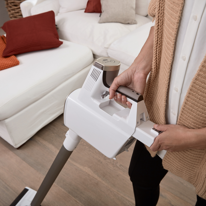 Als een vaardige dribbelaar beweeg je met Swirl® Quinyo® moeiteloos tussen, langs en voorbij alle obstakels zonder de beperking van de klassieke draad. Dankzij deze dynamische draadloze steelstofzuiger ben je dus veel sneller klaar.